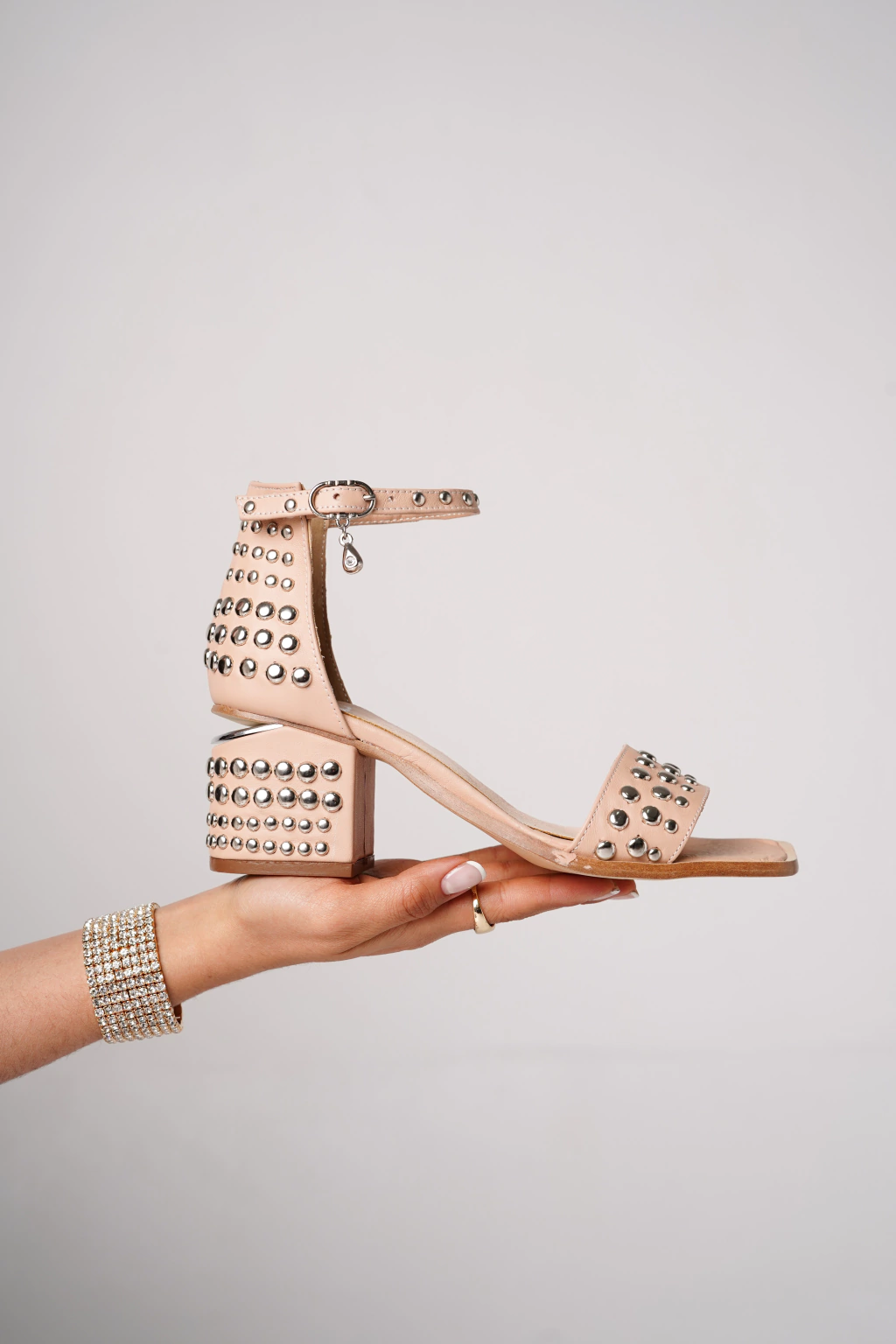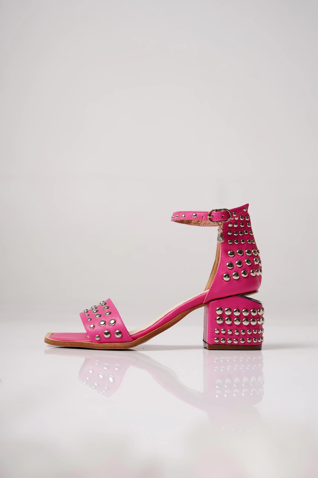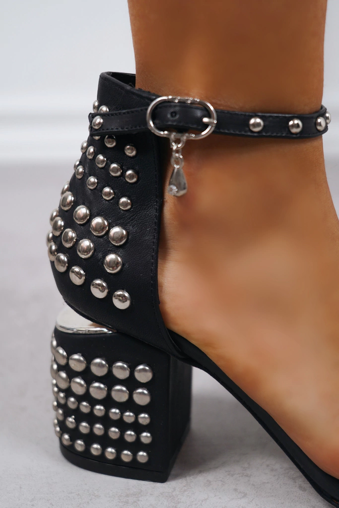 Material: Cuero Detalle: Tachas plata Taco: Suspendido de 6 cm