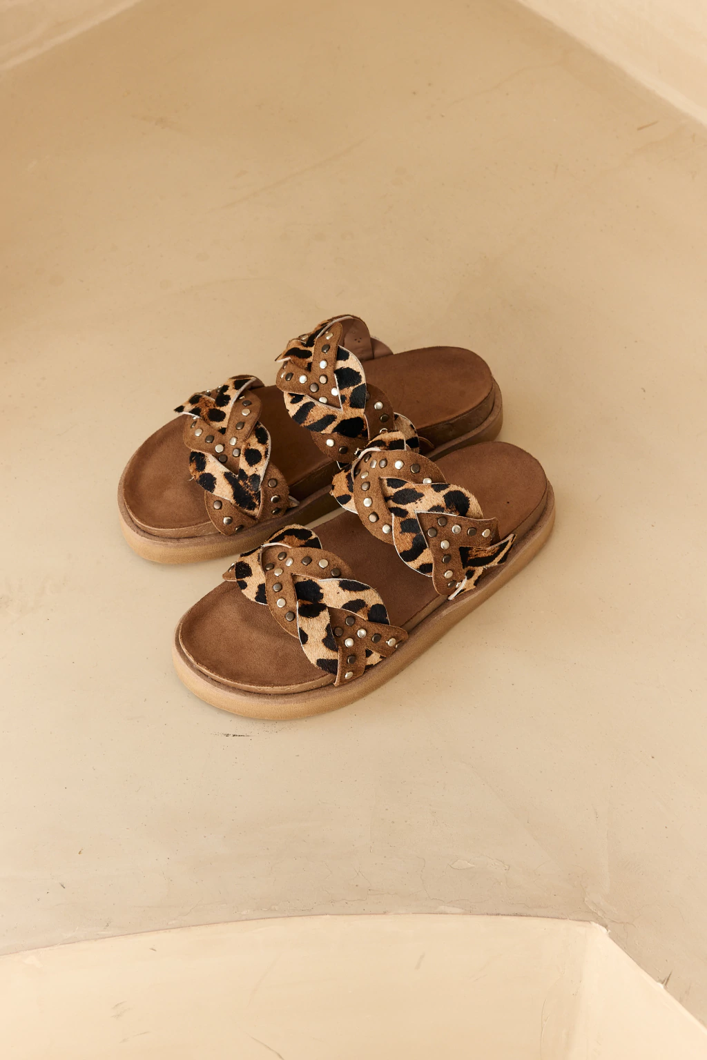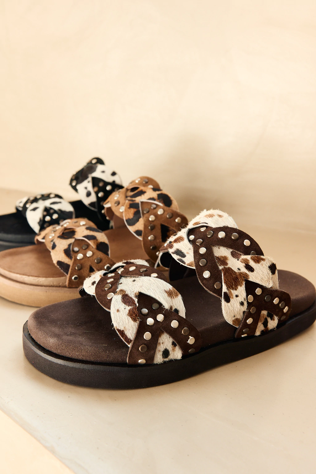 GINEB es la opción perfecta para quienes desean un look fresco y sofisticado, perfecto para combinar tanto en salidas casuales como en ocasiones especiales. El contraste entre el cuero trenzado y las tachitas aporta un detalle distintivo que realza cualquier outfit.