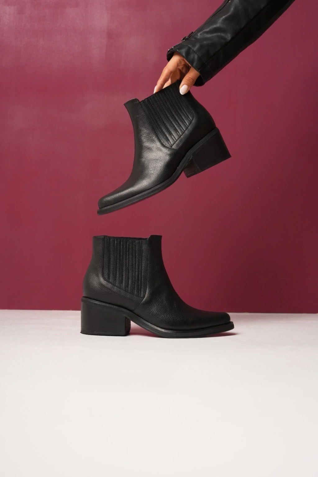 Texanita de cuero con elástico en los costados. Taco de 5 cm.